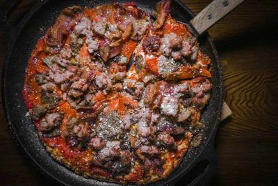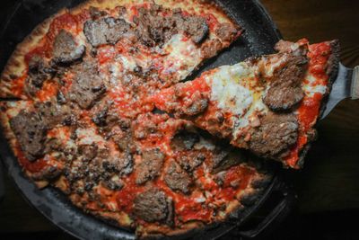 Meet the next level bar pie. Served in a 500-degree skillet, every pizza served at Cast Iron Kitchen has the perfect crisp, a...